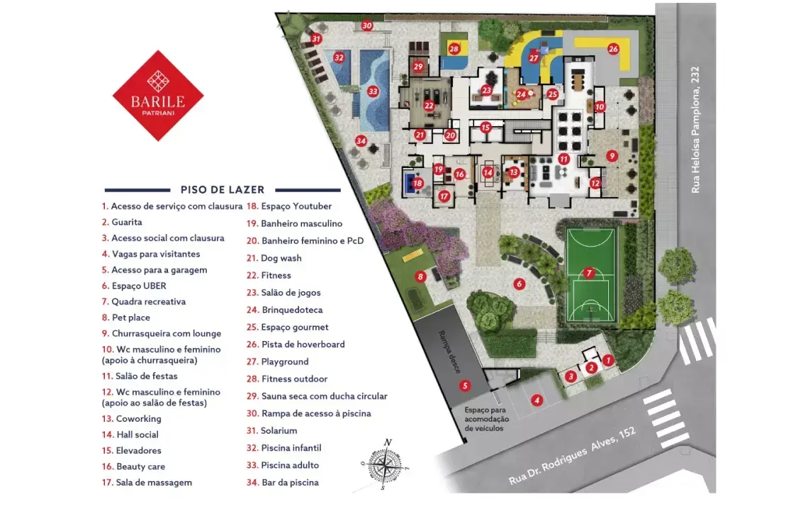 O BARILE oferece inúmeras opções de lazer e conforto, como piscinas para adultos e crianças, quiosque bar, quadra esportiva, sala de jogos, brinquedoteca, salão de festas, espaço gourmet, churrasqueira, beauty care, sauna, academia, pet place, car wash e espaço multiuso estilo coworking.