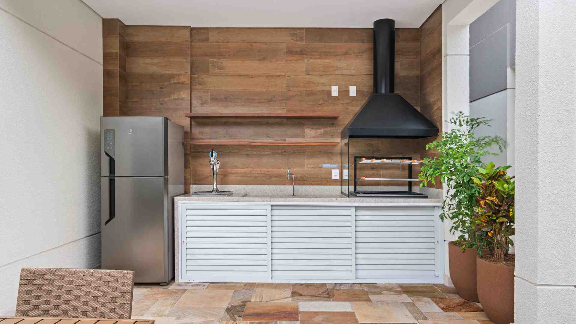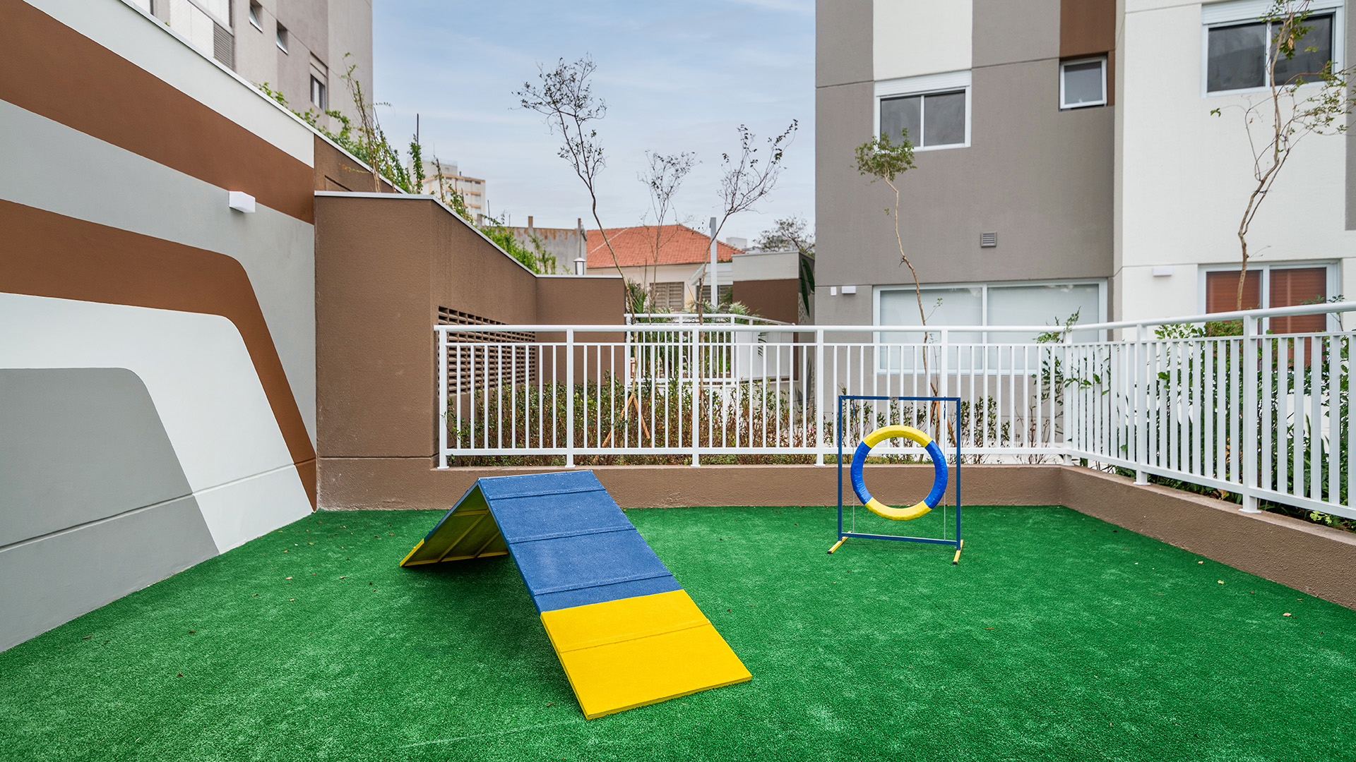 A área de serviço se integra a um quintal aberto exclusivo, ideal para instalar as máquinas de ar-condicionado, o aquecedor a gás, o varal de piso e ainda sobra espaço para a casinha dos seus pets.