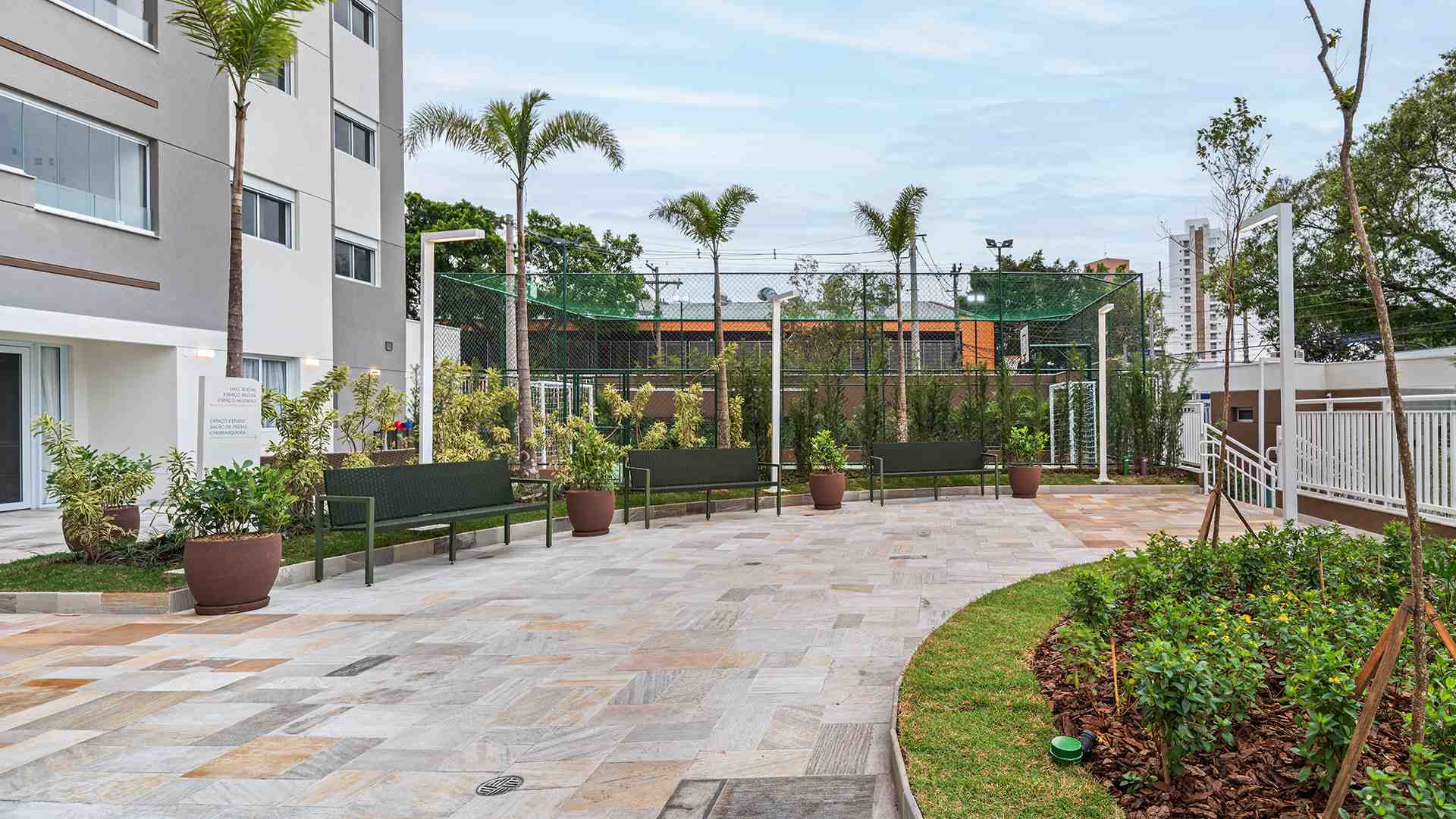 Cada apartamento terá duas vagas de garagem maiores que o padrão exigido pela prefeitura. Uma delas contará com infraestrutura elétrica e medição individual, preparada para veículos elétricos.