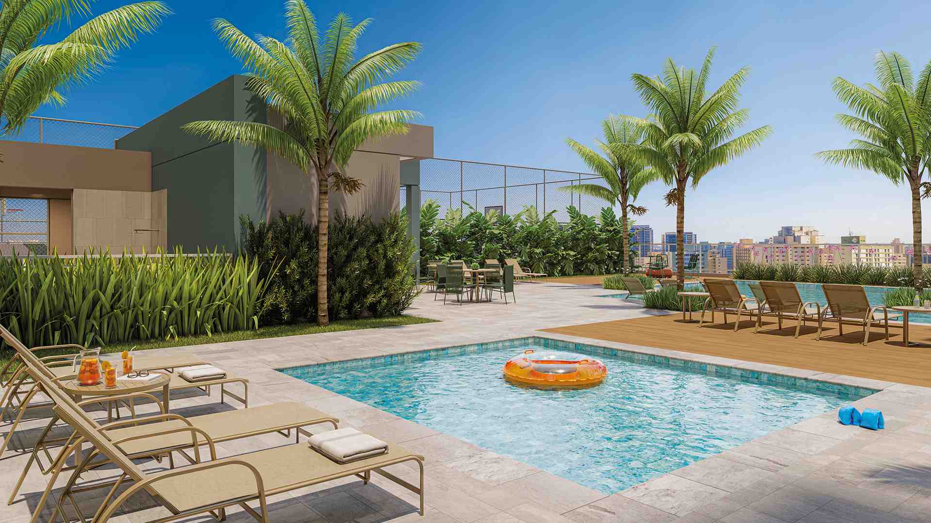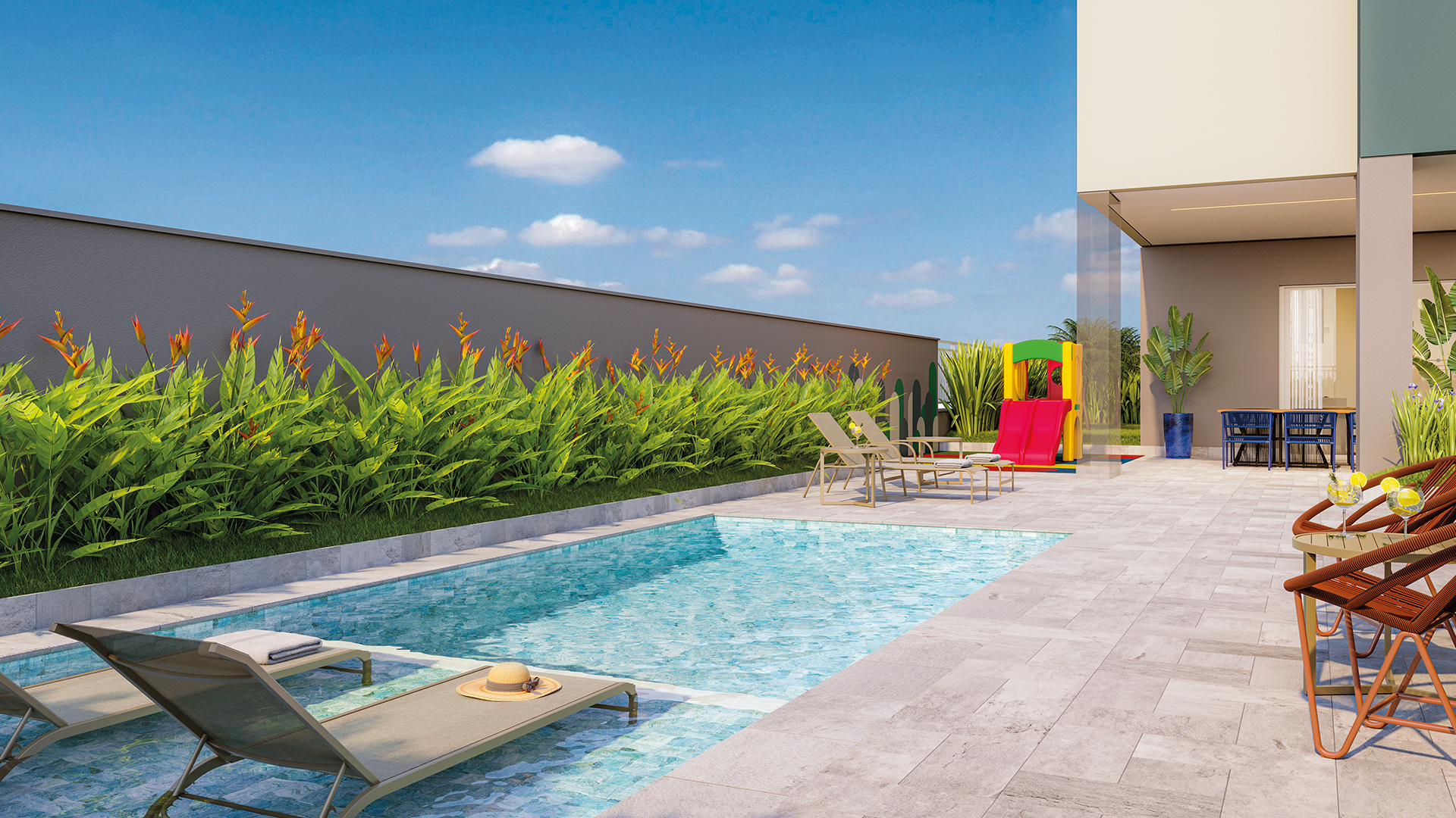 Piscinas adulto e infantil climatizadas, deck molhado e solarium
