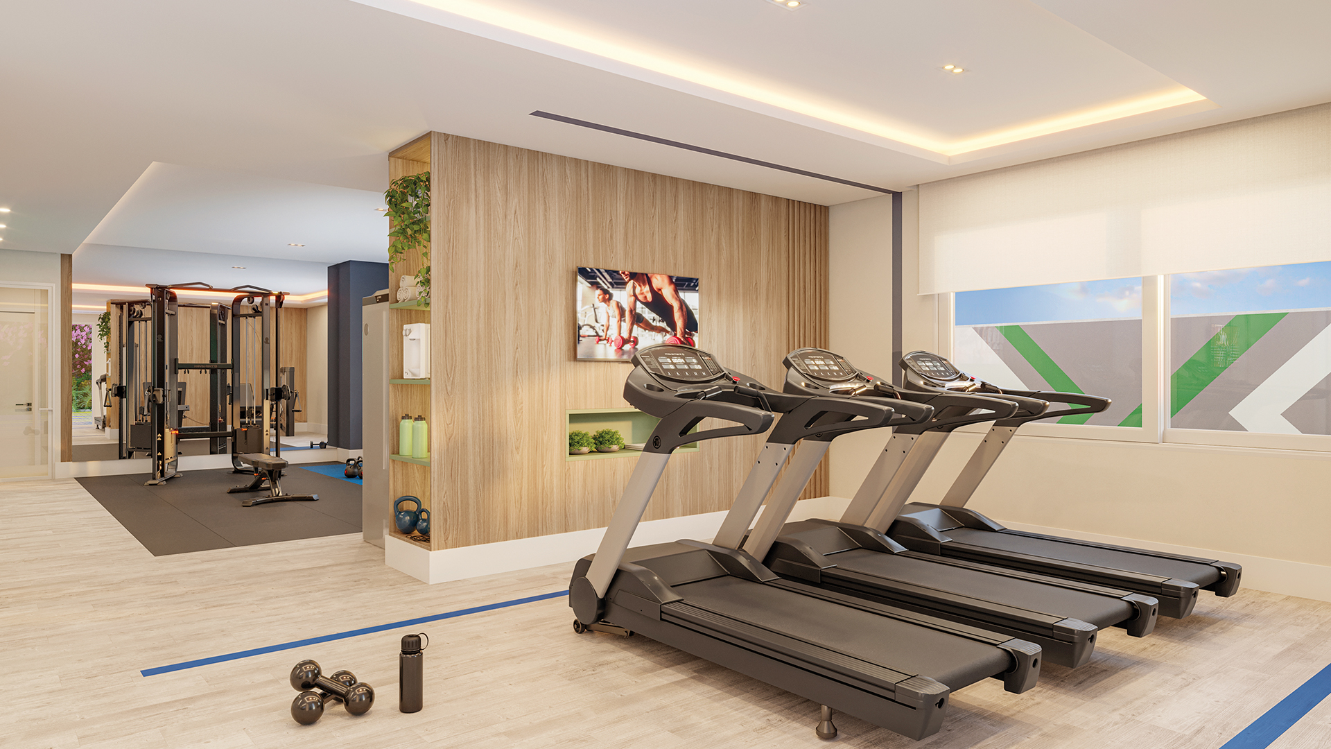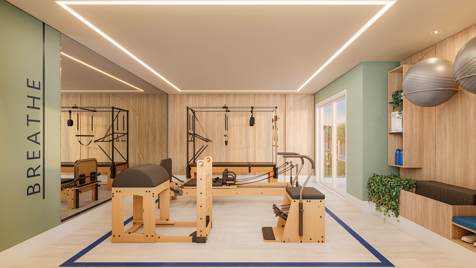 Academia com salas de pilates e spinning, além de equipamentos modernos e perfeitos para os treinos diários