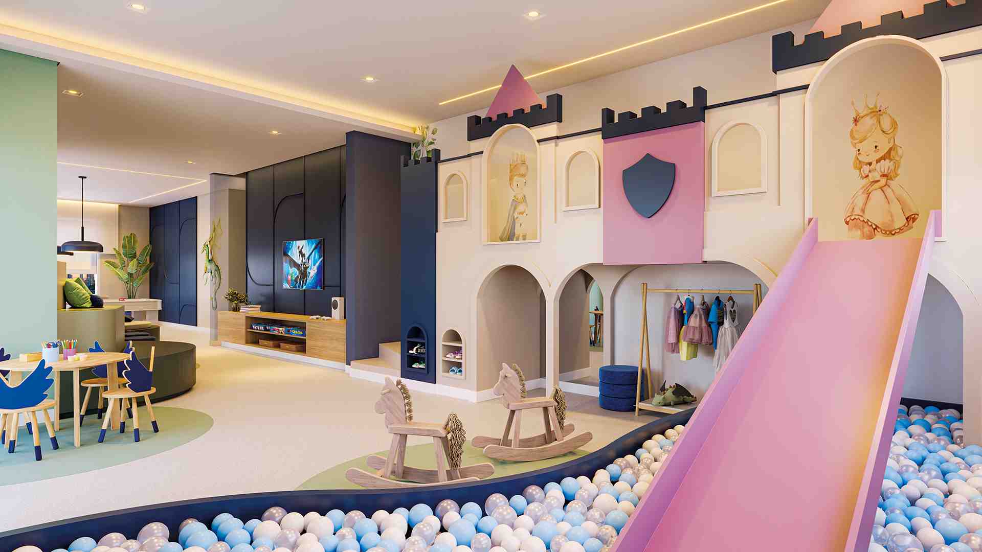 Brinquedoteca e playground com piso emborrachado, para diversão das crianças