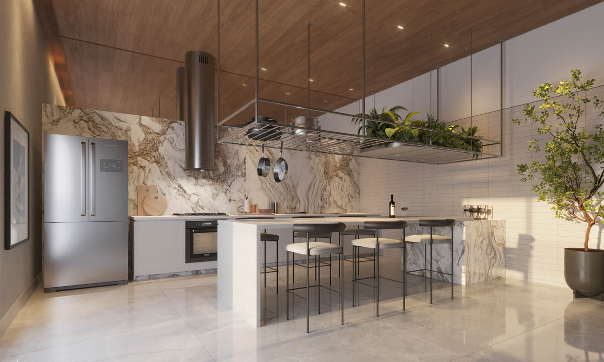 3 dormitórios (1 suíte) • Lavabo Integração cozinha - área gourmet