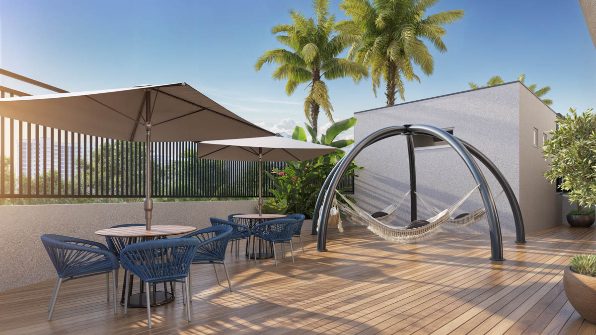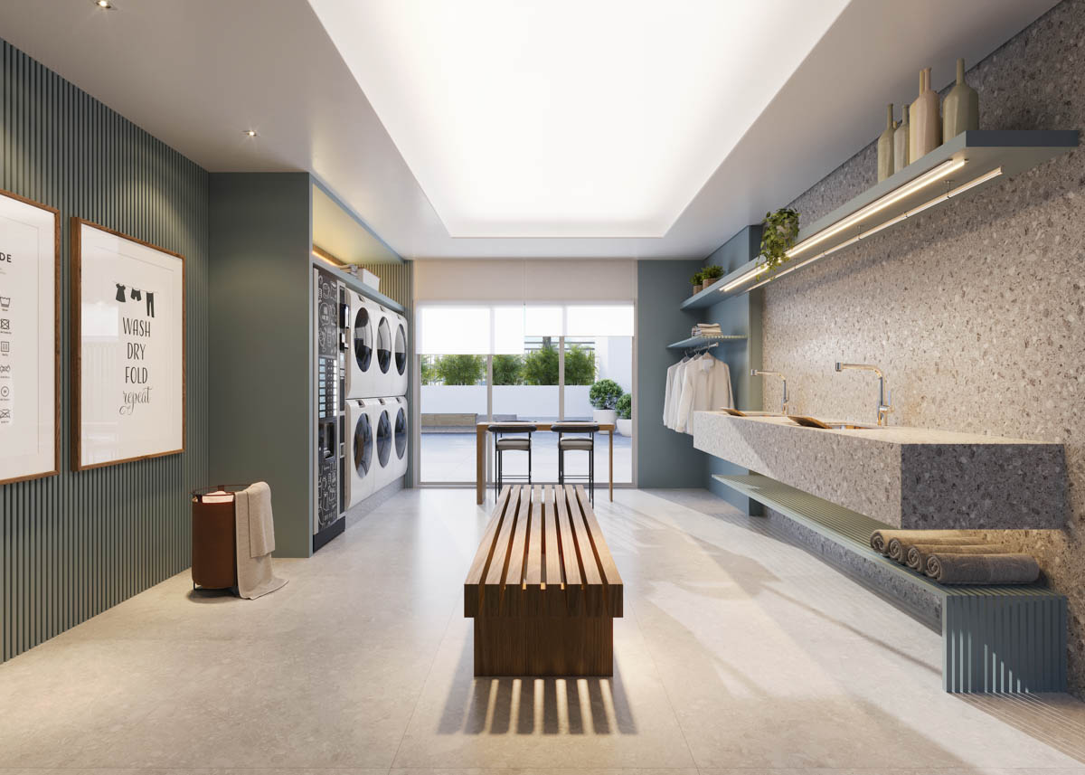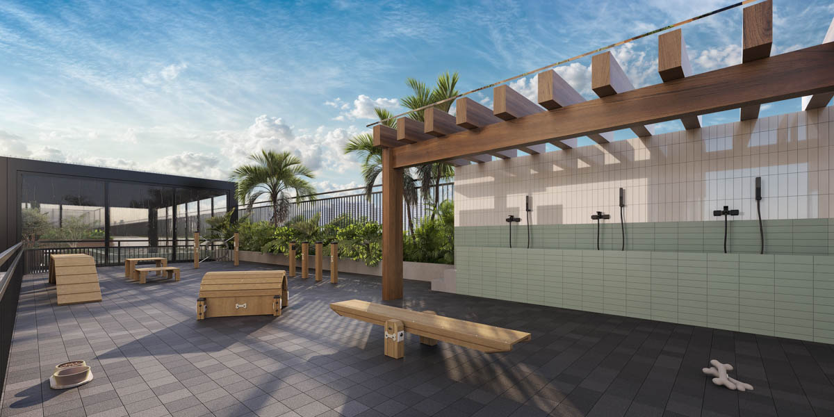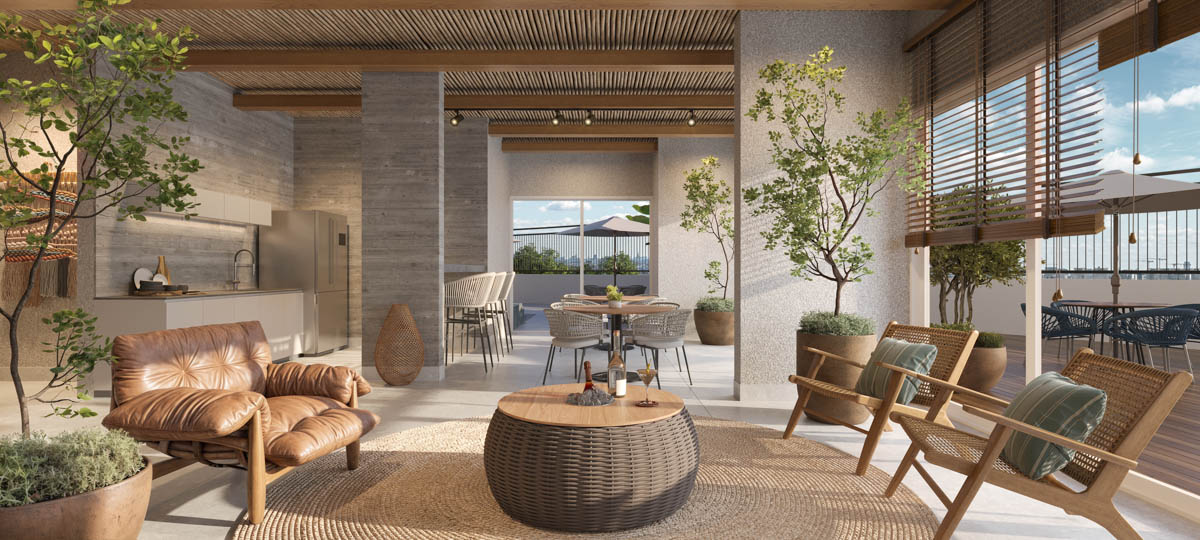 2 dormitórios (1 suíte) • Lavabo Integração cozinha - área gourmet