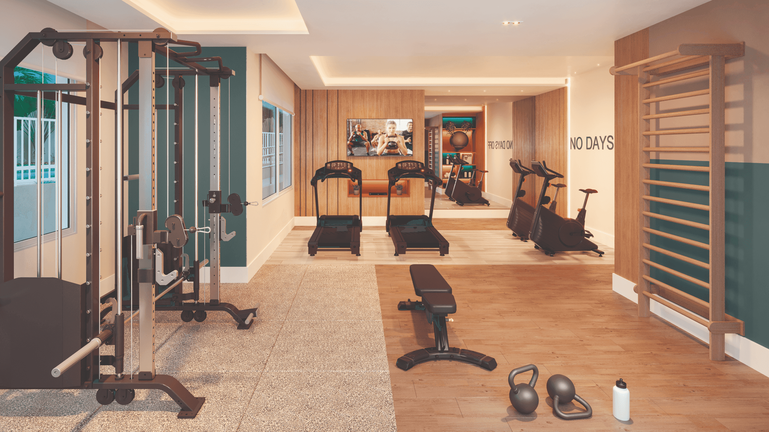 • Academia com equipamentos modernos e perfeitos para os treinos diários