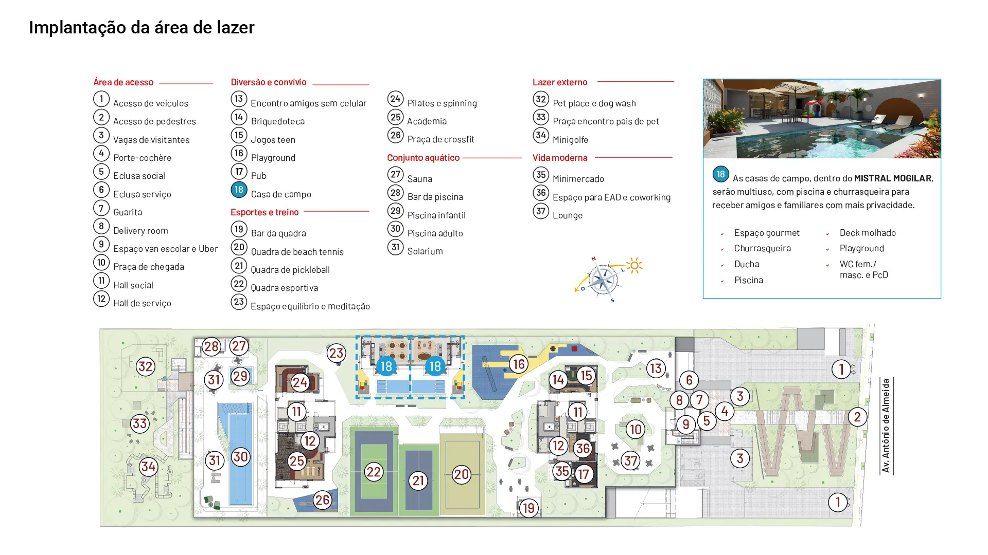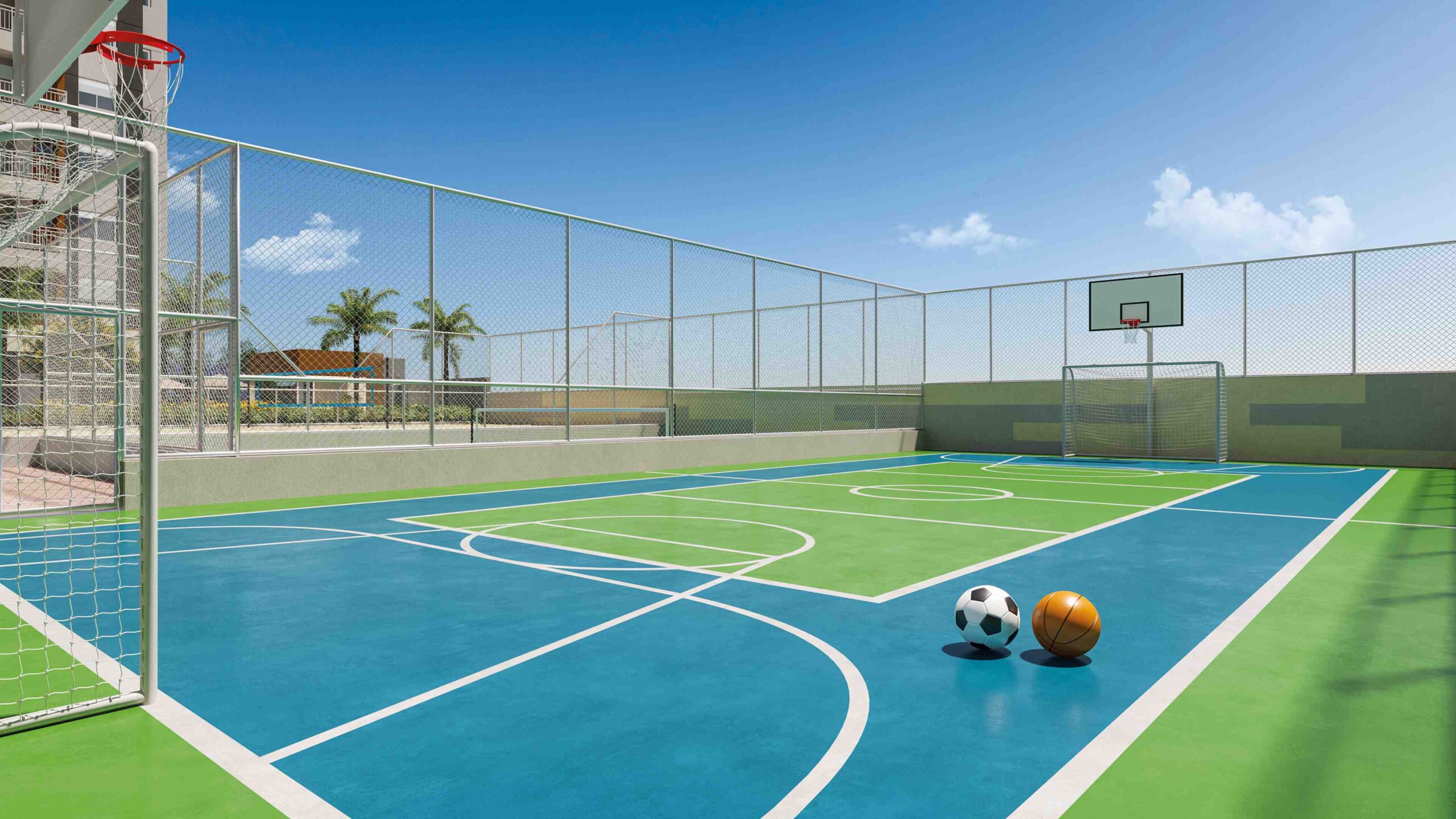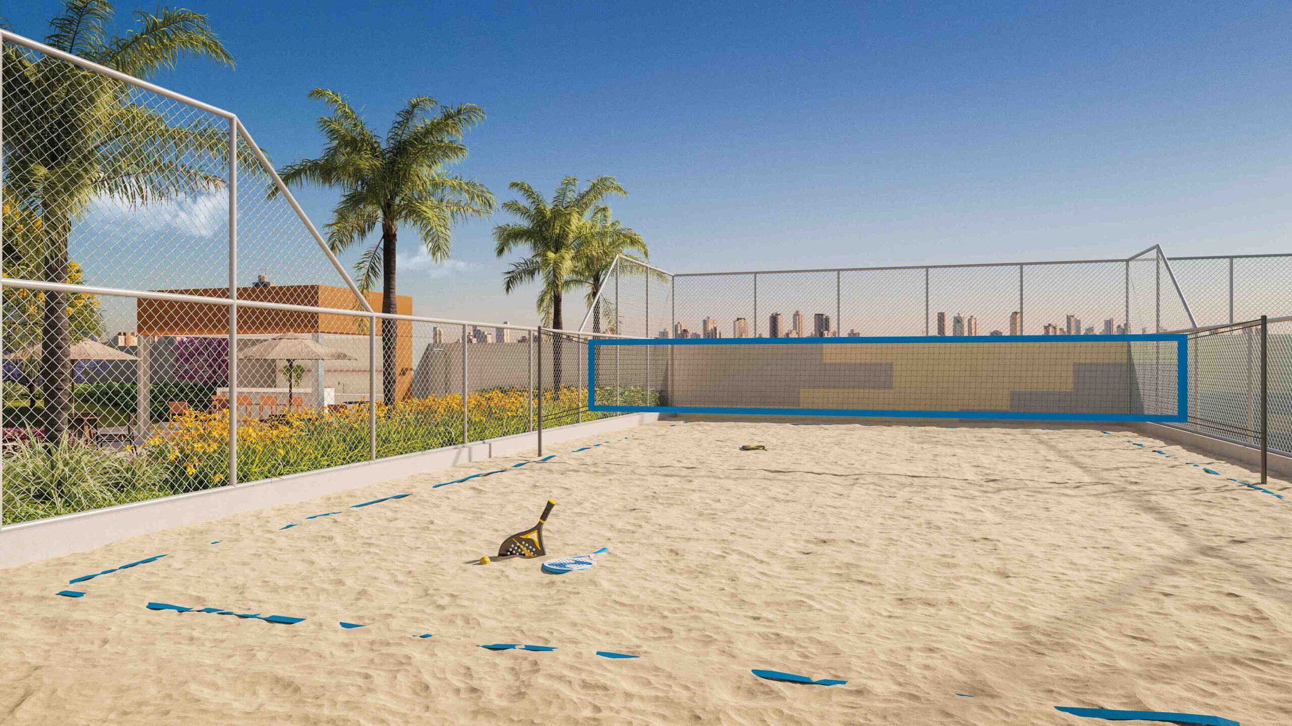 - Quadras de beach tennis, pickleball e recreativa