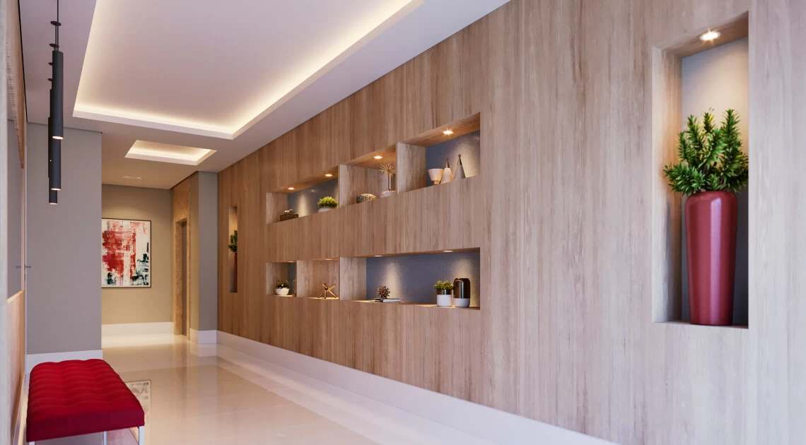O salão de festas será multiuso. Durante o dia, você poderá usá-lo como coworking, para trabalho. Durante a noite, para lindas festas. Ah! Também terá um coworking próximo da portaria para receber visitas.